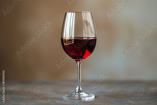 Minimalist Red Wine Glass Against a Soft Beige Background Highlighting Refined Elegance and Simplicity