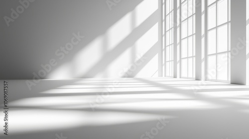Minimalist room with sunlight and window shadows