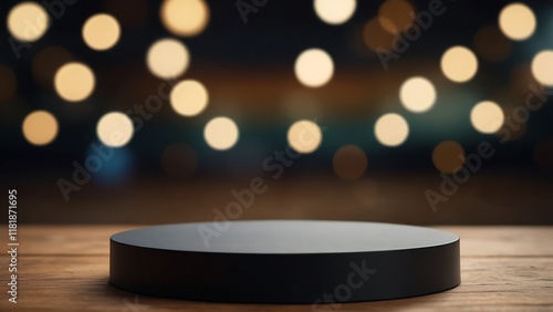 Minimalist Round podium on Wooden Surface with Blurred Brown Background
