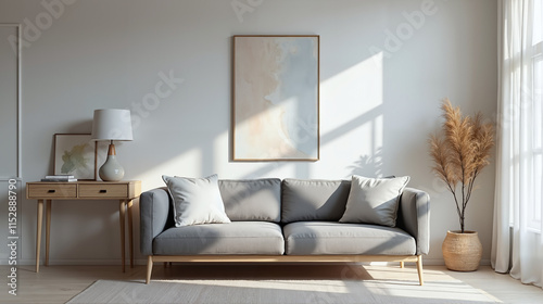 Minimalist Scandinavian Living Room in Serene Neutral Tones Bathed in Natural Light