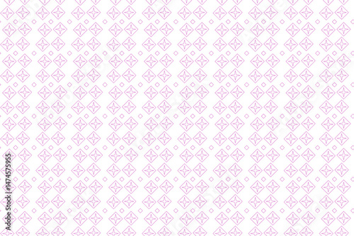 Minimalist Seamless Geometric Pattern Featuring Pink Outlined Star Shapes Within Diamond Frames On A Clean White Background. Ideal For Wallpapers, Textiles, Packaging, And Digital Backdrops.