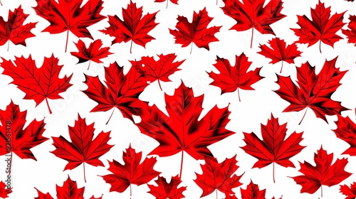 Minimalist seamless pattern of the Canadian flag in a handdrawn style, highlighting the red maple leaf and red bars on a white background