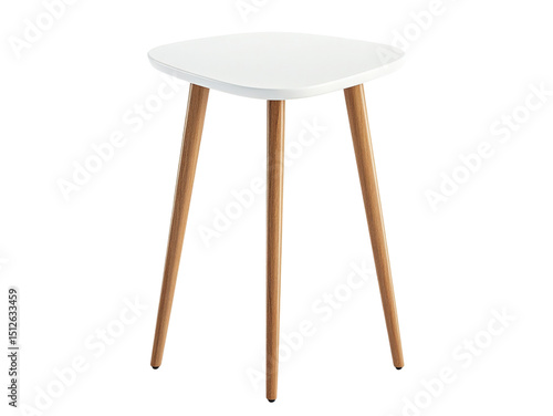 Minimalist Side Table Design: A contemporary, minimalist side table features a simple, elegant design. It showcases a clean, triangular tabletop supported by sleek, wooden legs.