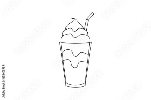 Minimalist single line drawing a milkshake with whipped cream straw Continous line