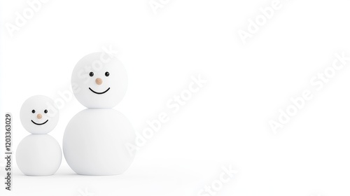 Minimalist Snowman Figures on White Background with Smiling Faces and Simple Design for Winter and Holiday Themes