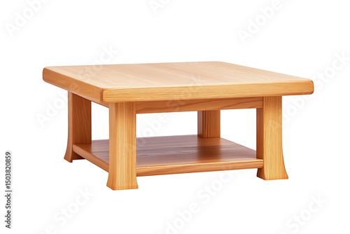 Minimalist Square Wooden Table with Open Shelf – Modern Living Room Furniture Featuring Natural Wood Grain and Simple Design