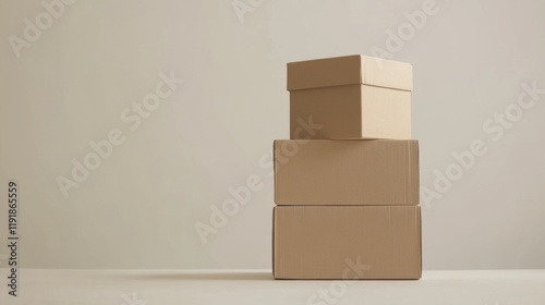 Minimalist Stacked Cardboard Boxes in Neutral Tones on a Simple Background Perfect for Packaging, Shipping, or Storage Concepts in a Contemporary Setting
