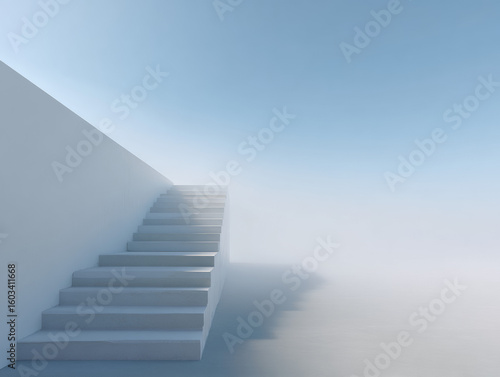 Minimalist Staircase Ascending into Infinite Mist with Soft Gradient
