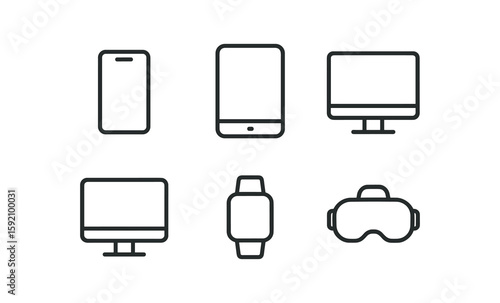 Minimalist technology icons collection: phone, tablet, monitor, watch, vr