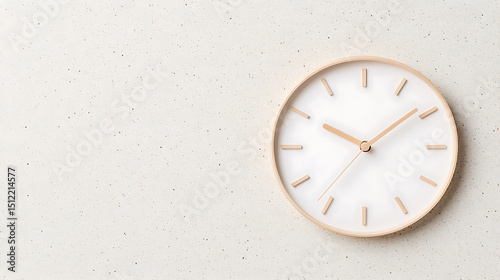Minimalist Timepiece: A light wood-framed clock with a white face hangs on a textured wall, showcasing a clean and modern design. Time is precious!