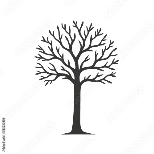 Minimalist tree silhouette, bare branches, vector art, black and dark gray, clean white background