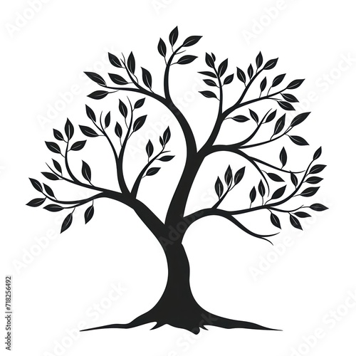 Minimalist tree silhouette graphic, depicted in a stylized flat black color, isolated on a white background