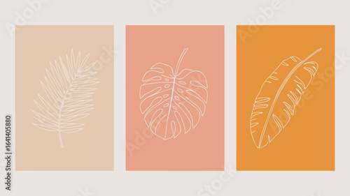 Minimalist Tropical Leaf Art Prints Palm, Monstera, Banana Leaves on Neutral Backgrounds
