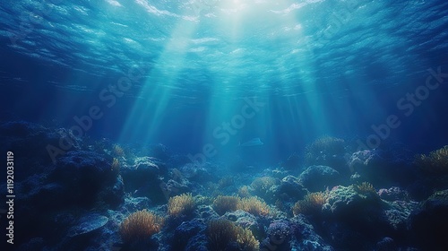 Minimalist underwater abstract background with glowing accents and smooth transitions