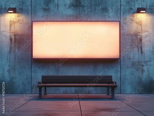 Minimalist Urban Scene with Blank Billboard Against Concrete Wall at Sports Venue Entrance