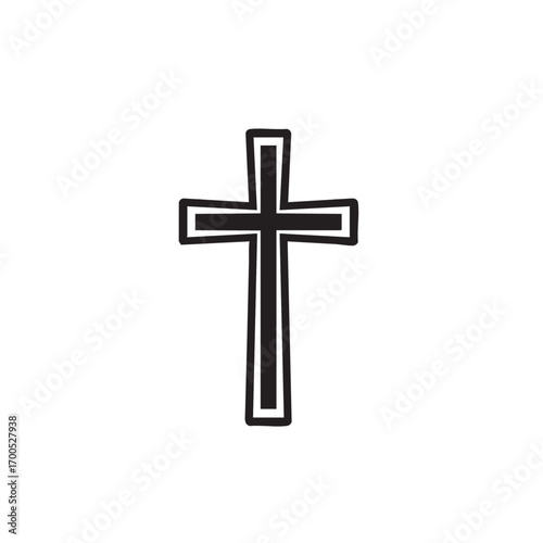 Minimalist Vector Cross Illustration with Bold Outline in Black for Religious and Spiritual Design