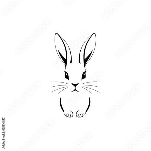 Minimalist Vector Illustration of a Black and White Rabbit with Ears and Whiskers.