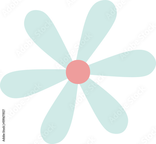 Minimalist vector illustration of a simple flower with rounded petals and pink center, isolated on white background, representing nature, beauty, and simplicity