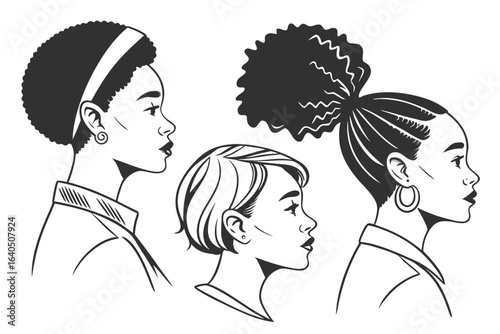Minimalist Vector Set of Diverse Female Avatars – Clean Profile Silhouettes with Stylish Haircuts for Professional and Creative Use