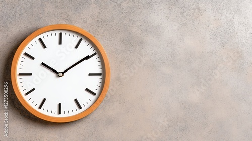 Minimalist Wall Clock with Wooden Frame on Textured Gray Background