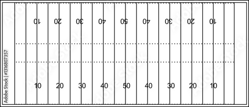 Minimalist White American Football Field Diagram with Player Positions and Yard Markers