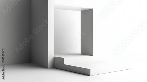 Minimalist White Architecture: Geometric Shapes, Abstract 3D Rendering, Modern Design