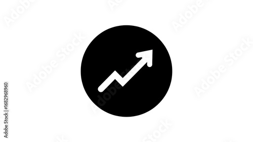 Minimalist white arrow pointing upward inside black circular background, modern icon for financial growth, analytics, and digital interface use