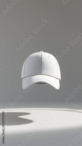 Minimalist White Baseball Cap Floating in Studio Lighting on a Clean Background