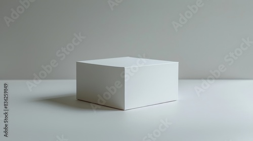 Minimalist White Cardboard Box on Light Gray Background with Clean Lines and Symmetry