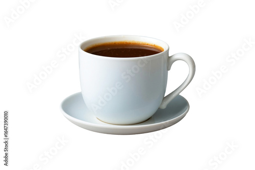 Minimalist white ceramic coffee cup filled with dark hot beverage Isolated Transparent Background, Png