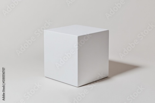 Minimalist white cube stands out against soft, neutral backgroun