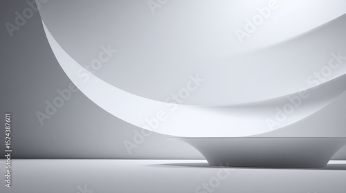 Minimalist White Curved Architecture, Ideal for Product Showcase and Modern Branding Campaigns, Emphasizing Cleanliness and Innovation : Generative AI