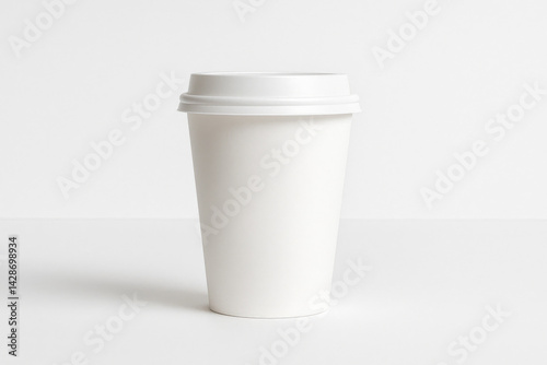 Minimalist white paper coffee cup with lid on a light background, ideal for branding or takeaway beverage mockups.