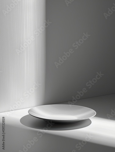 Minimalist White Plate on a Subtle Background with Light and Shadow, Ideal for Culinary Presentations