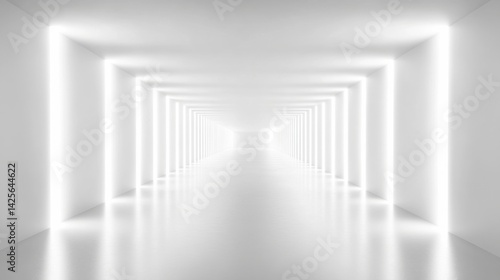 Minimalist White Room with Bright Linear Lighting and Infinite Perspective Interior Design