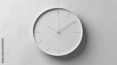 Minimalist white wall clock showing the time.