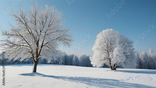 Minimalist Winter Landscape with Snowy Trees and Clear Sky