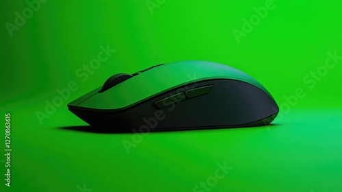 Minimalist wireless mouse with an ultra-flat design, placed on a vibrant green background, showcasing cutting-edge simplicity