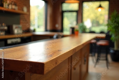 Minimalist wooden bar desk in natural light, showcasing simplicity and modern elegance.