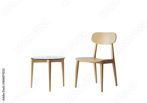 Minimalist Wooden Chair and Side Table Modern Furniture Design on transparent background