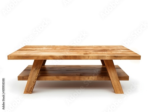 Minimalist Wooden Coffee Table with Clean Lines and Natural Finish on White Background