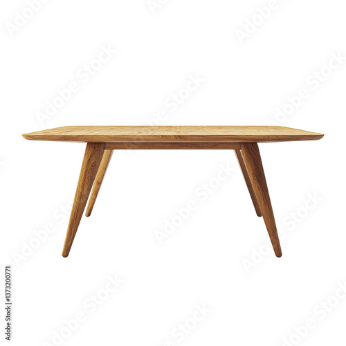 Minimalist wooden dining table with tapered legs on a transparent background Concept of furniture design, interior decor, and modern living