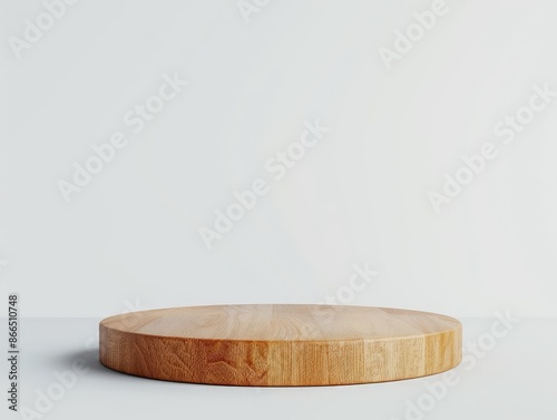 Minimalist wooden round podium on a white background. Perfect for product display, presentations, and design showcases.
