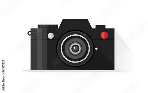 Minimalistic Black Vector Camera Graphic on White Background - High Resolution Flat Illustration Design