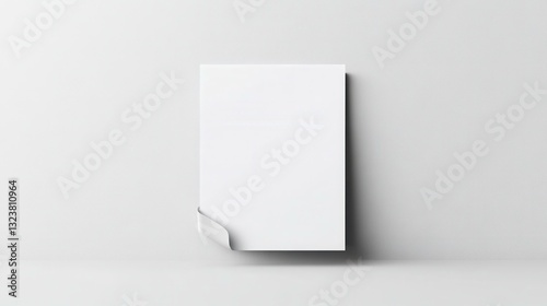 Minimalistic blank paper with curled edge on white background, perfect for design mockups and presentations.