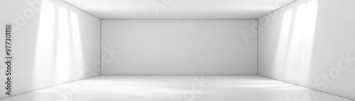 Minimalistic empty white room with natural light shining through. Clean and spacious interior perfect for design presentations or visualization.