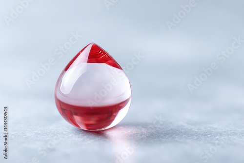 minimalistic image of single red blood drop glistening on smooth white surface with ample copy space