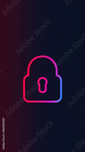 Minimalistic logo of a lock with pink and blue gradient background. Secure cloud storage. Icon of a mobile app. Security and data protection. Privacy