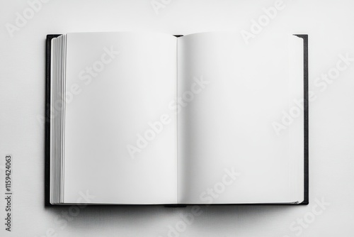 Minimalistic open white book showing blank pages isolated on light background