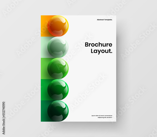 Minimalistic poster A4 design vector layout. Original 3D spheres corporate brochure template.